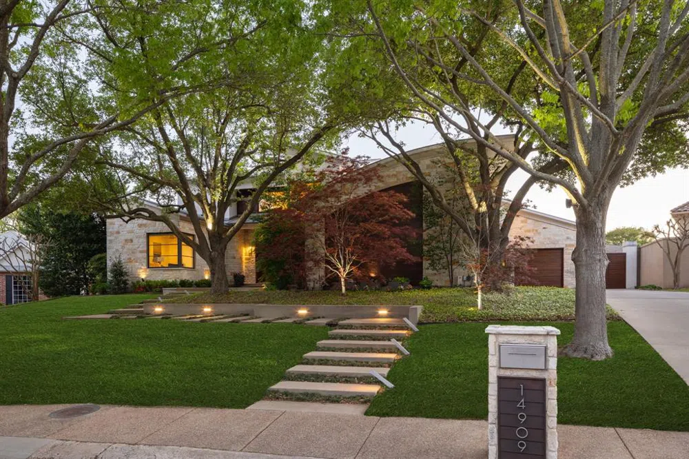 Nestled deep within prestigious Bellbrook Estates, this award-winning builder’s personal home offers over half an acre of contemporary luxury, adjacent to Celestial Park. Designed for entertainers, the open floor plan includes a stunning downstairs media room with a seated bar, a 1,000-bottle climate-controlled wine room, and a chef's kitchen boasting mahogany cabinets and commercial-grade stainless steel appliances. Oversized stacking glass doors reveal a tropical oasis featuring lush landscaping, a resort style pool, fire pit, covered patios for an outdoor living lifestyle with drop-down screens, an outdoor kitchen, and expansive yard space. Downstairs also includes a primary suite with dreamy closet space, a dedicated office space overlooking the backyard and a perfectly situated guest suite. Upstairs offers two additional bedrooms and game room, each offering picturesque park views. Perfectly located with convenient access to Dallas’ top private schools, this home also offers walkability to Addison's finest restaurants, Trader Joe’s, Whole Foods, and a variety of entertainment options. Additionally, enjoy the personalized services offered by the Town of Addison. This contemporary masterpiece is ideally situated in the heart of Dallas, blending ideal luxury with unparalleled convenience.